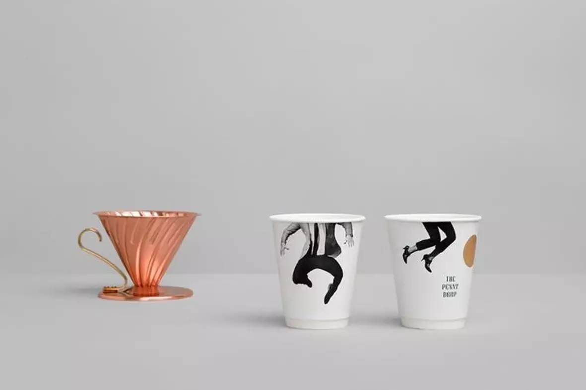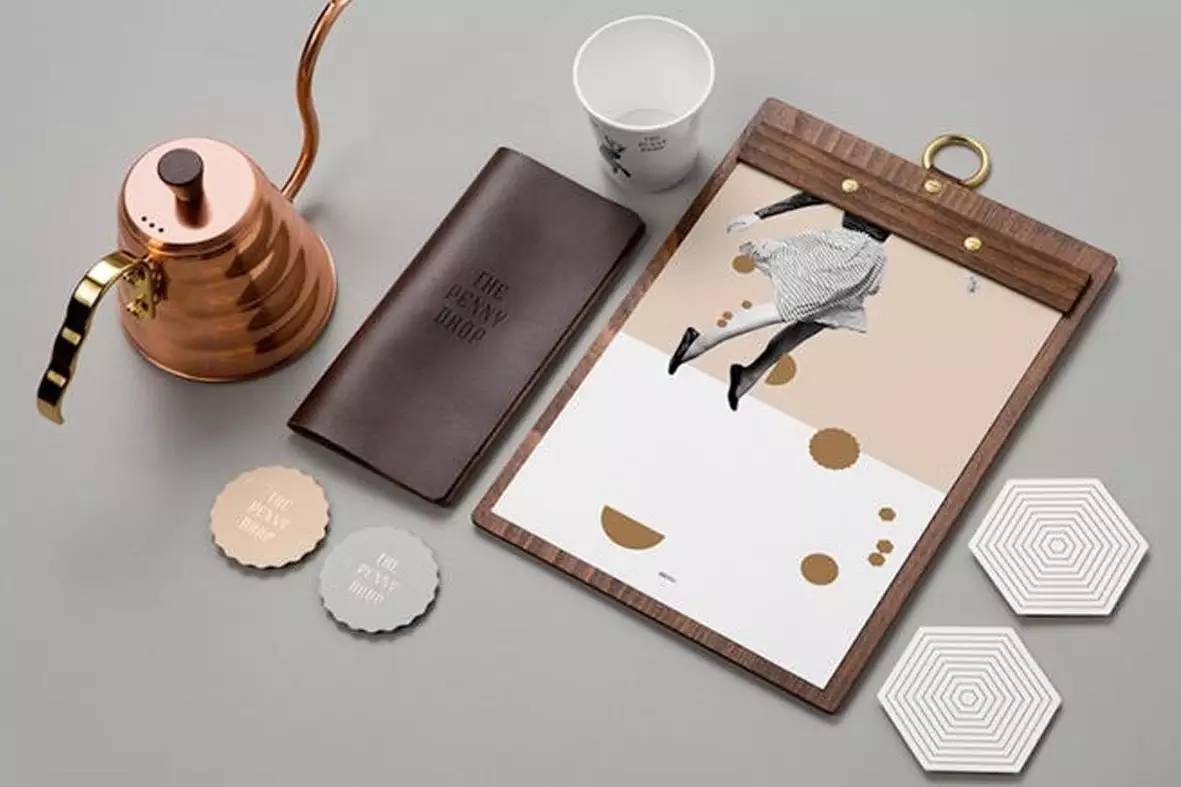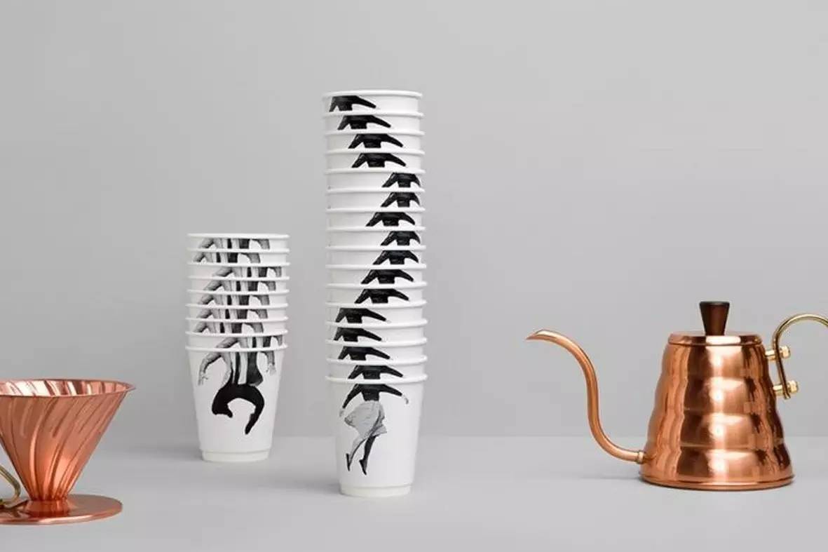 有時,黃銅色的大圓片也出現(xiàn)在杯子上,就像與人像一起躍動。在旁邊搭配銅色的咖啡壺或咖啡杯后,帶人像的杯子就更具漫畫氣息。